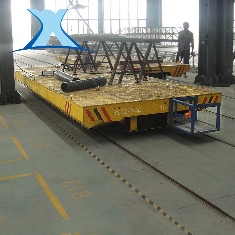 BZP系列轉盤換軌車為電動平車的配套裝備。當生產工藝流程線上需轉彎、且電動平車也不能滿足其要求時,可配轉盤換軌車。BZP系列轉盤換軌平板車可分手動和電動兩種。