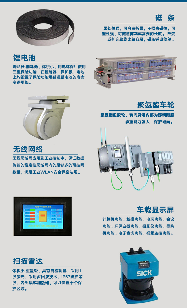 AGV重載磁條引導平車是一種以電池作為電源,舵輪作為驅動系統,磁條作為輔助,其運行不受限制,可以根據需求自動化對位,輥輪傳送,頂升,臺面旋轉等功能,載重能力1-30噸