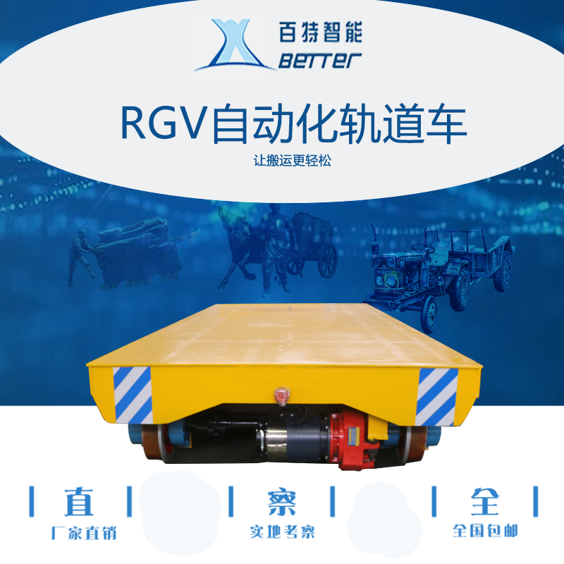 RGV軌道車主要由車身、導軌、傳動系統(tǒng)和控制系統(tǒng)等部分組成。車身是RGV軌道車的主體,由鋼材制成,具有足夠的強度和剛性。導軌是固定在地面上的金屬軌道,用于引導RGV軌道車行駛的方向。傳動系統(tǒng)由電機、減速機和鏈條組成,通過電機驅(qū)動鏈條運轉(zhuǎn),從而帶動RGV軌道車的運動。控制系統(tǒng)則是整個RGV軌道車的大腦,負責接收指令、處理信息,并控制軌道車的運行。