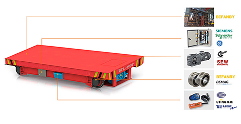 1.安全載重系數高 平車采用箱梁式結構,車輪采用的車加工,熱處理,平車的安全系數可以達到1.5 2.自動化程度高 平車可以增加plc,實現自動化對接,無人操作車間 3.短途運行